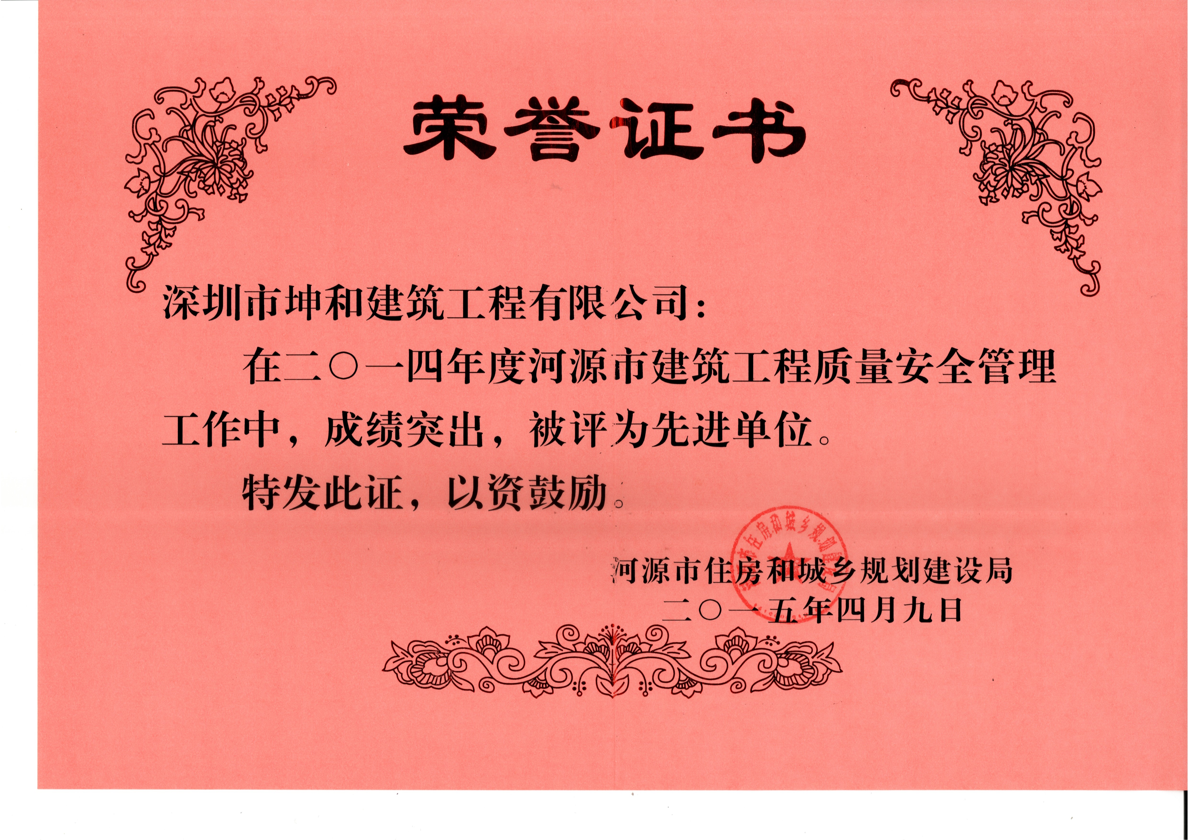 中華沃土,德載萬物;時代滄桑,神州巨變;改革的車輪,滾滾向前,印證了深圳光輝之歷程。坤和公司隨著深圳的建設與發展,逐步發展成為擁有集房產開發,建筑施工、設計、裝飾裝修及勞動服務等多項專業于一體的現代建筑企業。 經營之道,貴在誠信,興衰之理,系乎一變。坤和公司今天的成就,得益于我們始終堅持“安全第一,質量第一,信譽第一,用戶第一”的經營理念,認真貫徹“質量責任重于泰山,顧客滿意高于一切”的方針,
